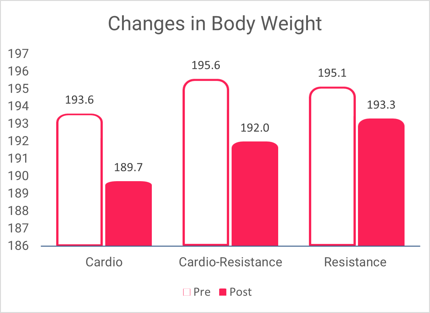 Adapted from Willis et al., (2012). This study showed that over the course of the study, the AT and the AT/ RT group lost significantly more weight than the RT only group.